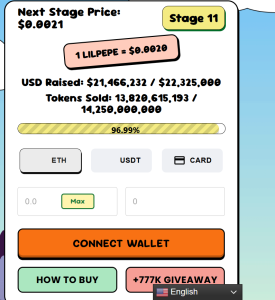 Little Pepe (LILPEPE) is one of the most popular projects in 2025. At the time of writing, it is in Stage 11 of its presale at the price of $0.0020 per token and will be raised by $0.0001 in the following stage to $0.0021 per token.